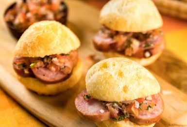 Abra os pães de queijo e recheie-os com as fatias de queijo; por cima, coloque o melaço e feche os pequenos sanduíches. Sirva.